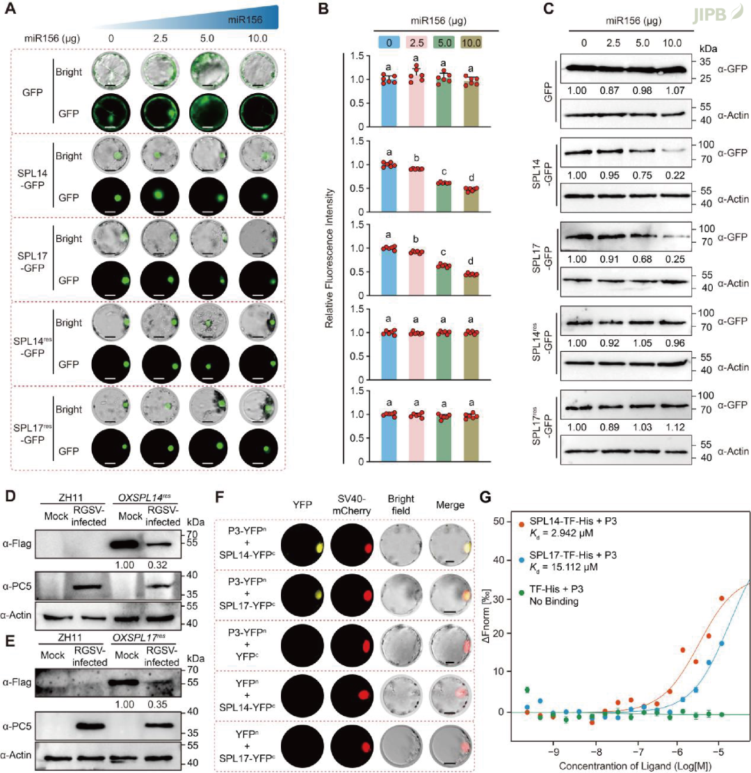 2. RGSV P3直接互作miR156靶标SPL14/17并可能促进其降解