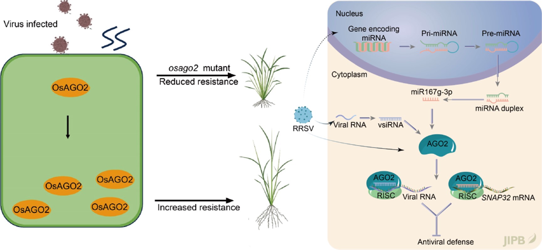 文章引用:Zhao, S., Ren, J., Hu, Q., Dong, C., Lian, B., Liu, X., Wu, M., and Wu, J. (2025). An AGO2–miR167g-3p–SNAP32 module confers antiviral immunity in rice. J. Integr. Plant Biol. https://doi.org/10.1111/jipb.70112
